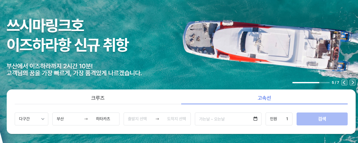 부산에서 히타카츠 가는 배는 07:50, 09:10, 11:50에 있으나 요일과 월에 따라 출발일정이 아르므로 아래 링크에서 꼭 확인해 주세요.