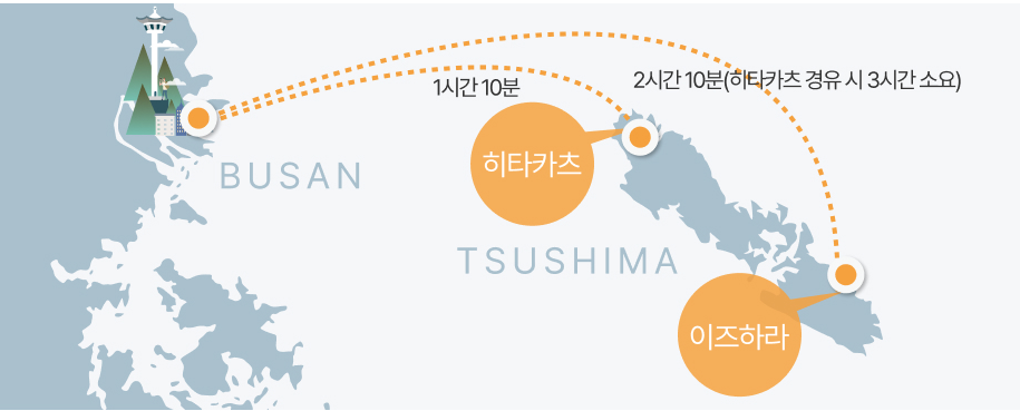 • 부산 → 이즈하라 : 08:40, 15:30 (1일 2회 운항) / 수, 목요일 운항