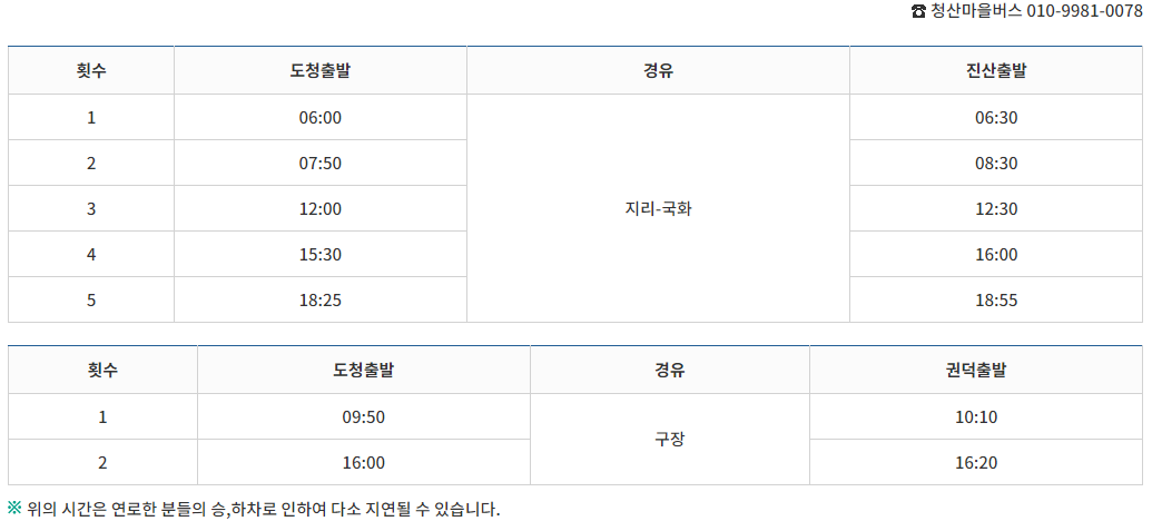 🔸 청산도 마을버스 운행시간표